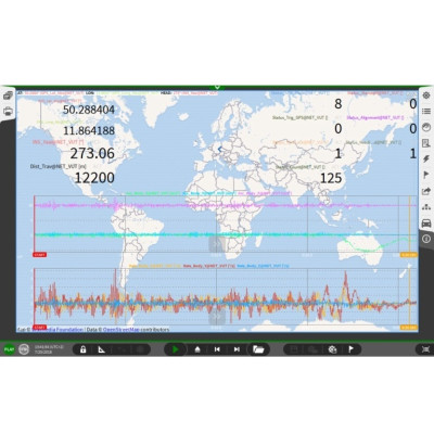 Available instruments: analogue/digital meters, charts, scopes, bar graphs, spectrum analysers, XY plots, GPS maps, spectrograms, efficiency maps, power instruments, video feeds, and more.