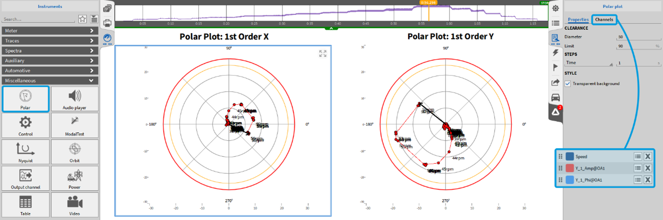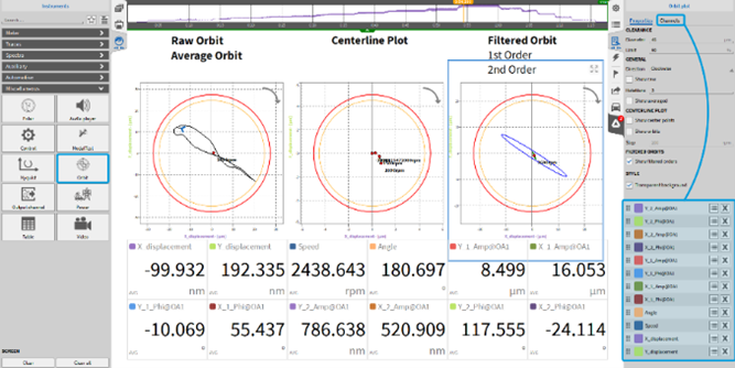 Orbit Plot & Polar Plot: Two powerful new instruments for orbit analysis: the Orbit instrument and the Polar instrument (see images below), ideal for diagnosing rotational machinery issues by visualizing shaft movement and vibration patterns