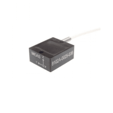 The Model 8102 is a low cost, plug & play triaxial accelerometer. Featuring stable piezo-ceramic crystals, the accelerometer incorporates full power and signal conditioning with a maximum current consumption of only 22 micro-amps. The model 8102 is available from ±25g to±6000g ranges and provides a flat frequency response up to 6kHz. The housing provides two holes for screw mounting and is offered in anodized Aluminum or Stainless Steel options.