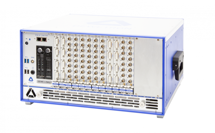 The DEWE3-M4 is a rugged and compact data acquisition system for portable or mobile use. The M4 has 4 slots for user exchangeable TRION / TRION3 data acquisition modules (for up to 32 high speed analogue inputs) and LAN, USB3, HDMI and WiFi interfaces for full connectivity.