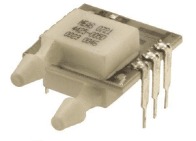 The model MS4425 is a temperature compensated, piezoresistive silicon pressure sensor packaged in a dual-in- line configuration and intended for cost sensitive applications where excellent performance and long-term stability are required. Integral temperature compensation is provided over a range of 0-50°C using laser-trimmed resistors. The pressure sensor is available in absolute, gauge or differential pressure ranges from 0-1 to 0-300 psi. The pressure ports are 1/8” barbed ports which mate with 3/32” ID tubing. These tubes are parallel to the printed circuit board to allow other boards to be located above the sensor. For a vertical mounted tube in gauge or absolute pressure, refer to the MS4426.