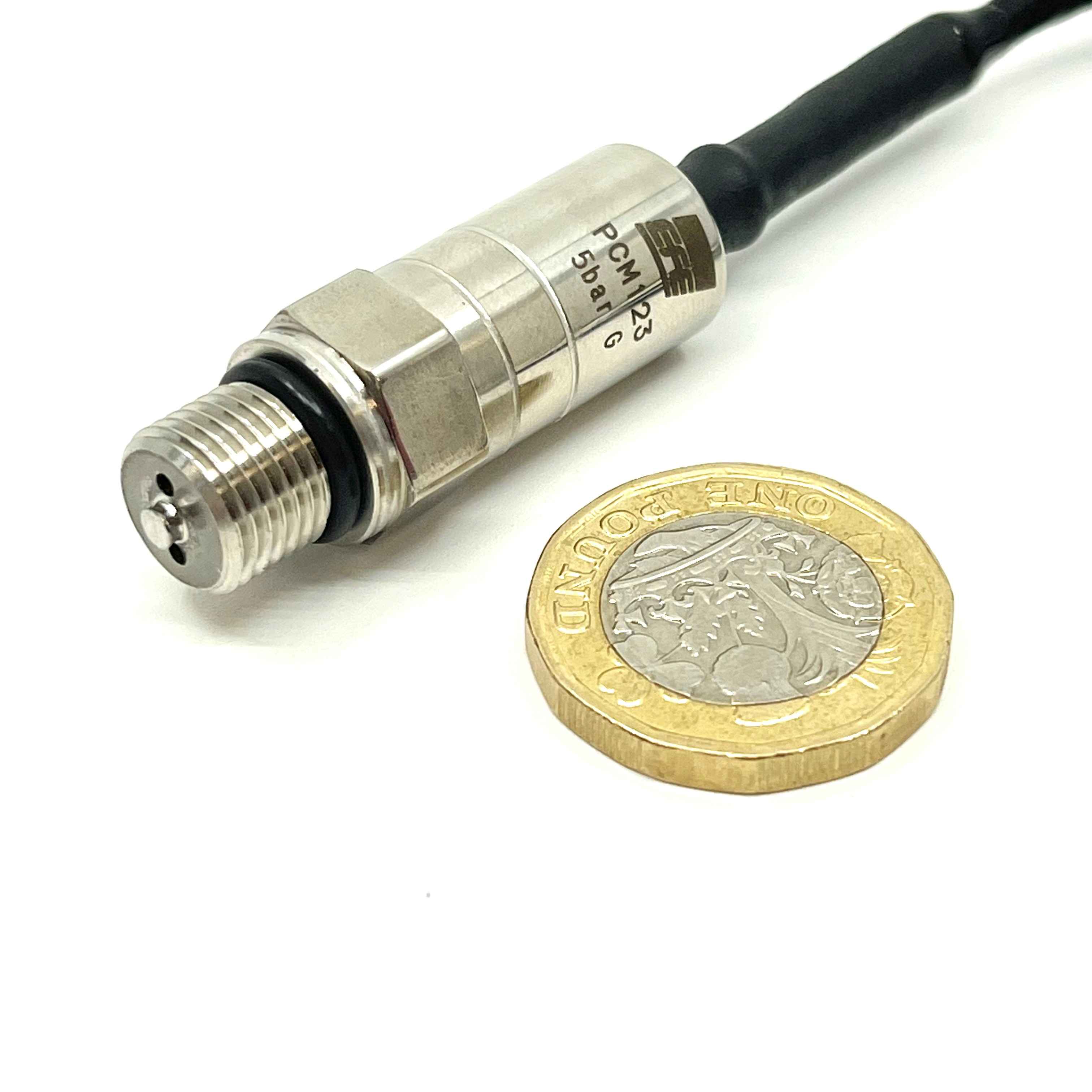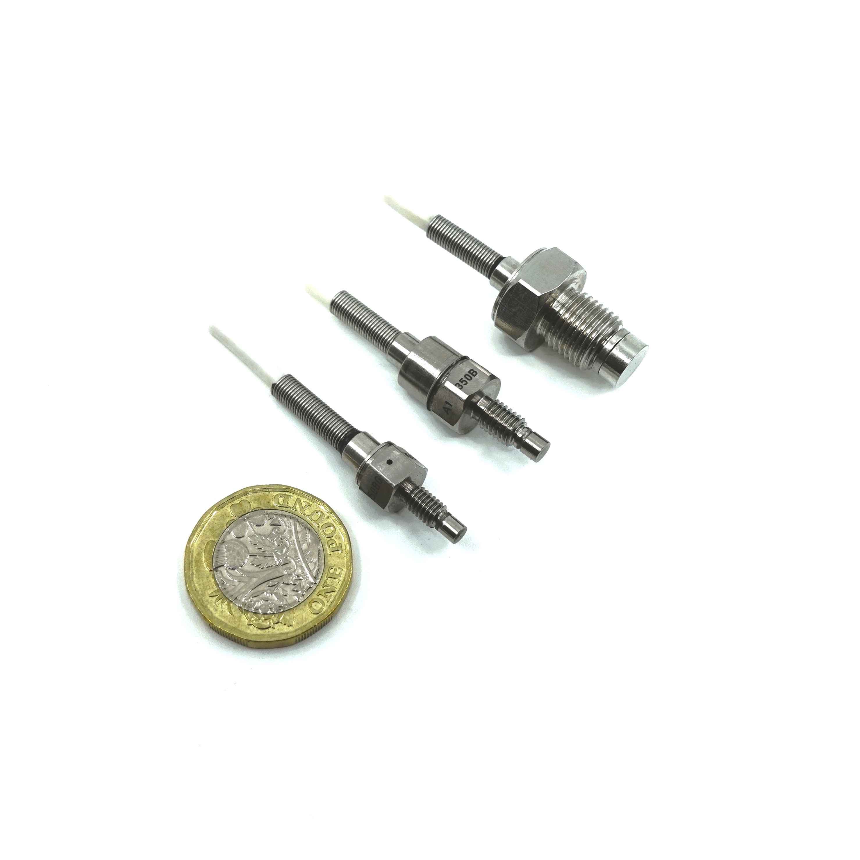 We believe that this is the smallest Pressure Sensor at 8.6mm diameter with an amplified output (although we could be proved wrong one day). Specifically designed with a low mass at 3 grams without cable, M5 thread, 0.5-4.5VDC output and pressure ranges -1 to 250 Bar. The PHT version is capable of being used to 175 Deg C. The Thin Film sensing technology guarantees a very linear performance and excellent stability over time.